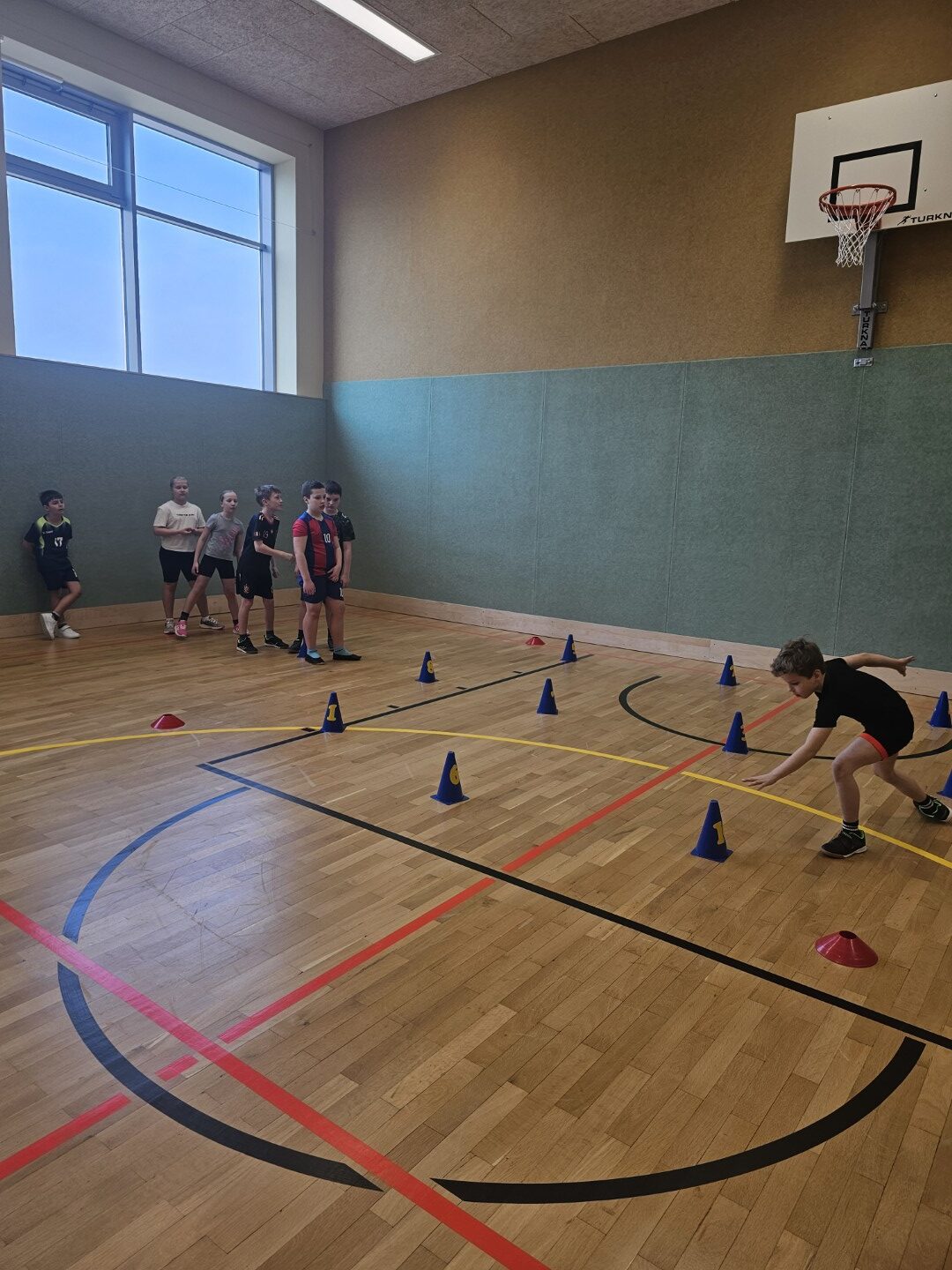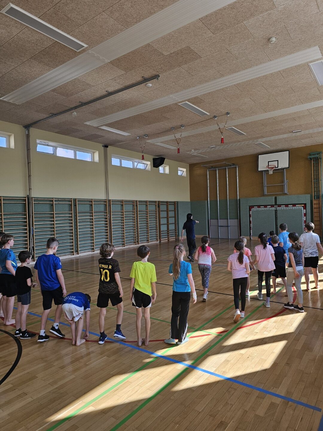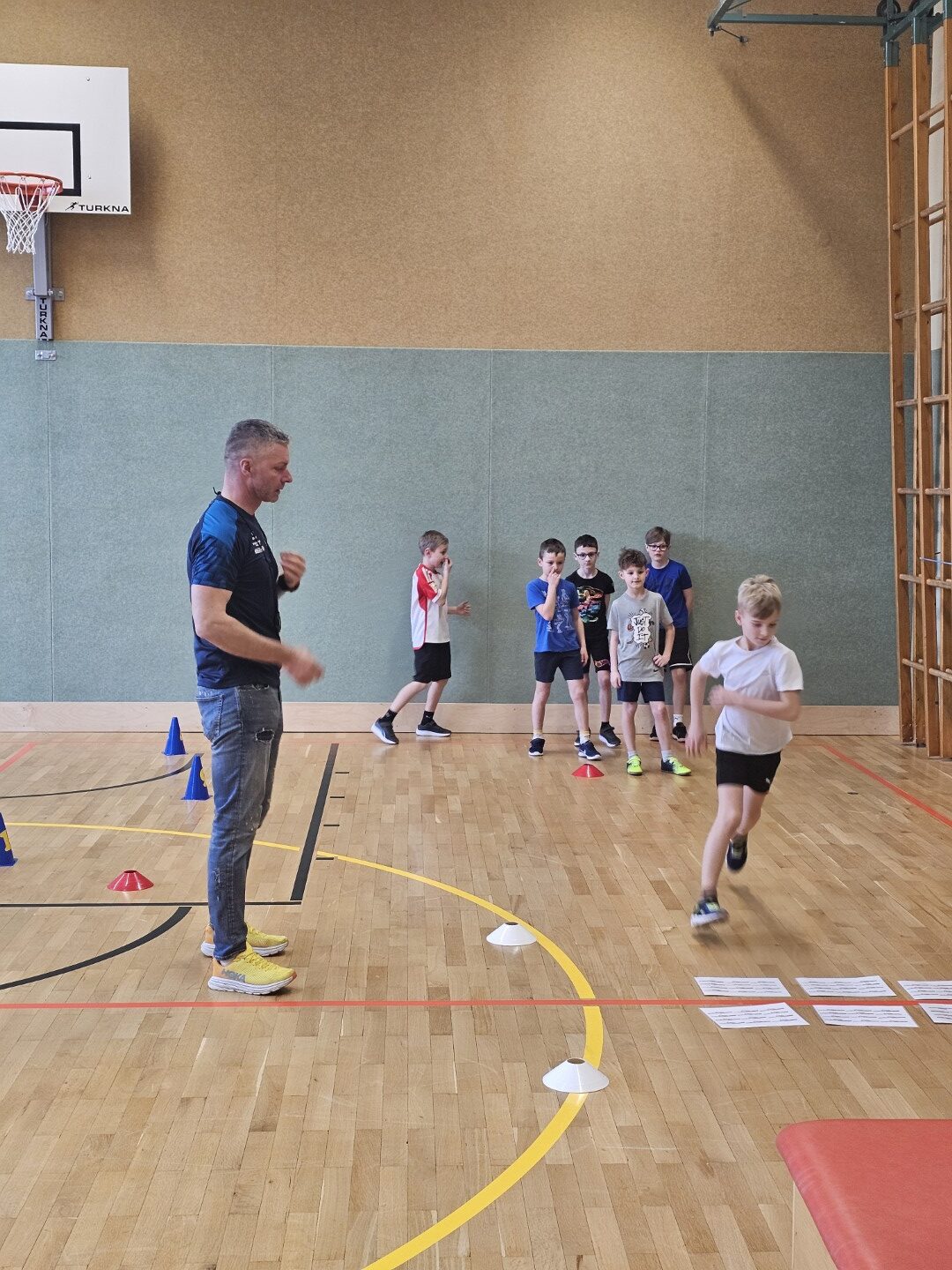 Unter der motivierenden Anleitung von den Trainern Herr König und Herr Stöcklegger trainieren die Kinder Koordination, Schnelligkeit und Teamgeist. Mit viel Einsatz, Freude und Ehrgeiz steigern sie spielerisch ihre sportlichen Fähigkeiten. Die Vorfreude auf die bevorstehende Vorentscheidung ist deutlich spürbar!