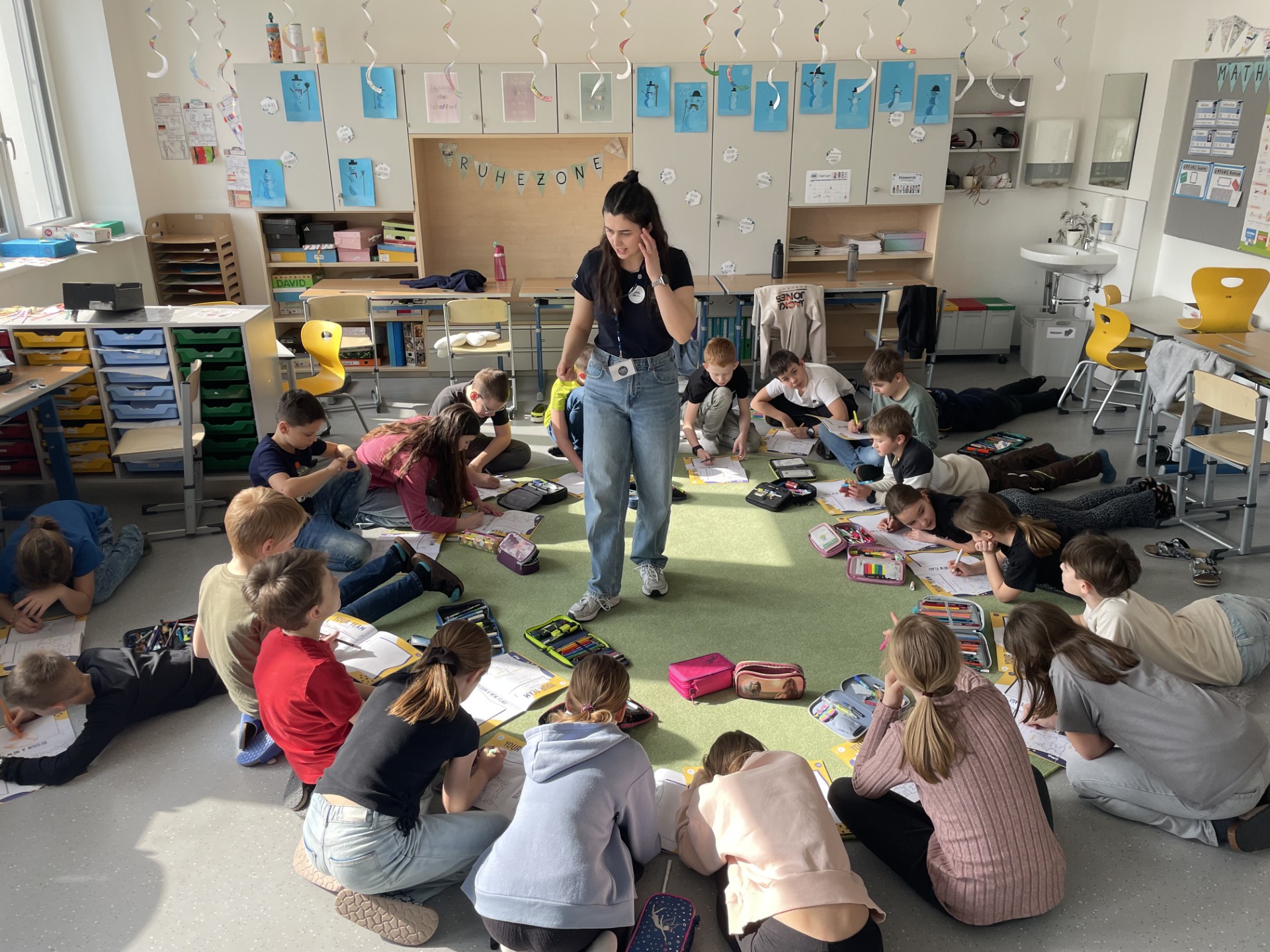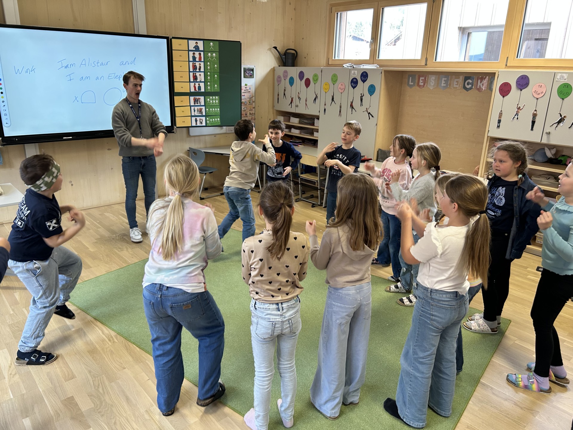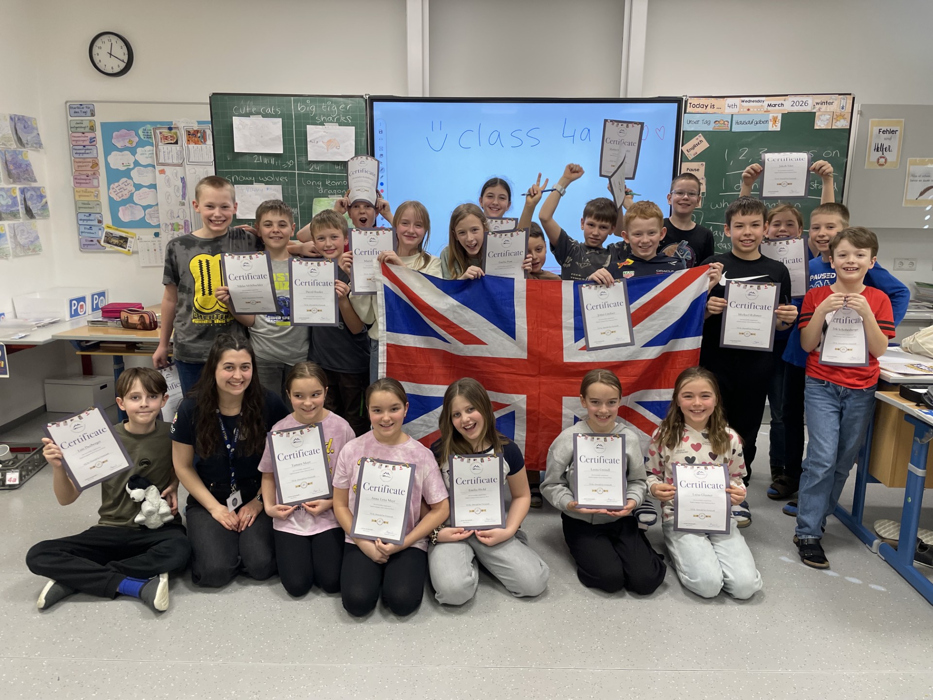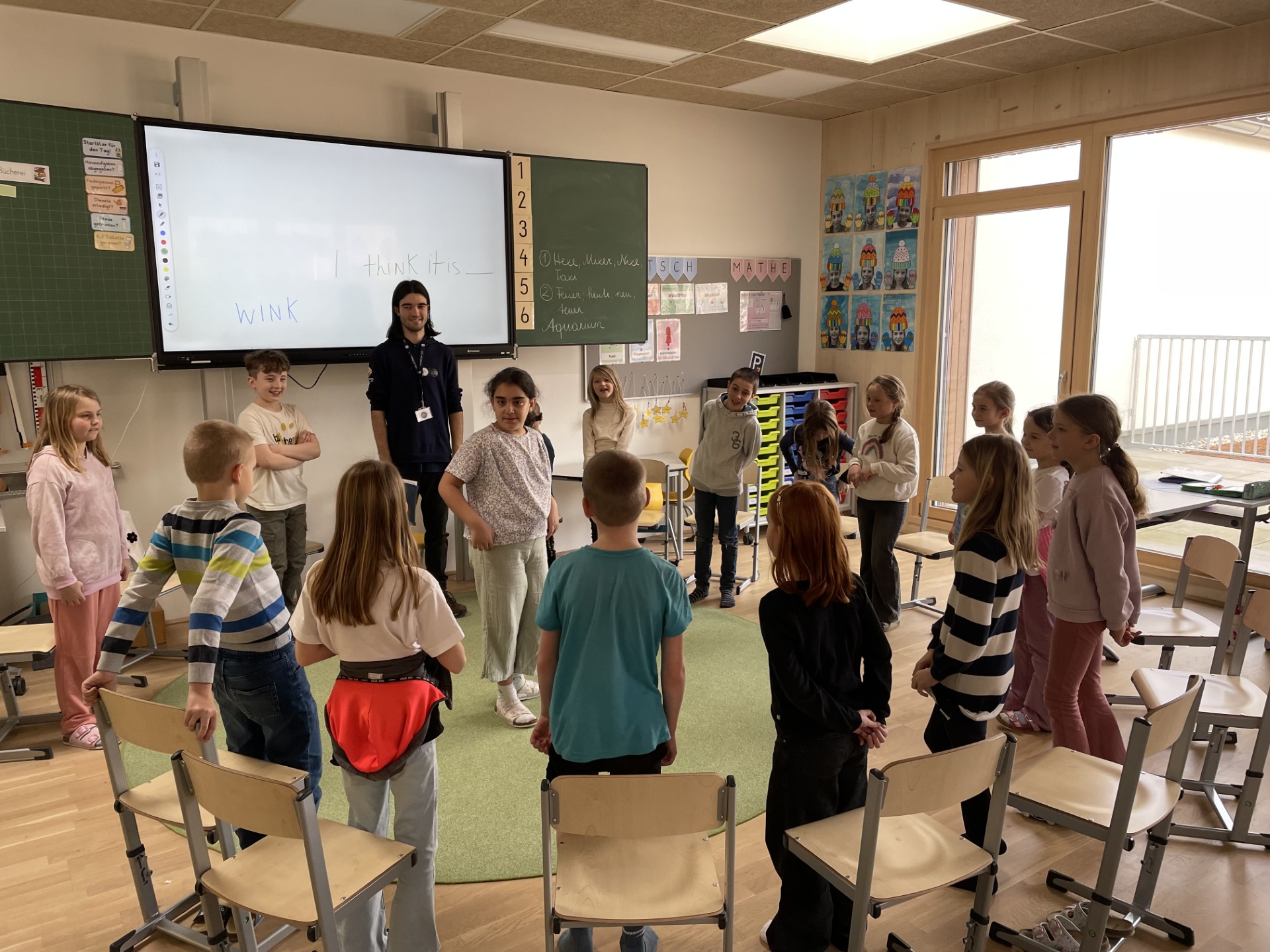 Zahlreiche Native Speaker bereichern aktuell in allen Klassen unseren Schulalltag . Von morgens bis mittags wird Englisch gesprochen – und das nicht nur im Klassenzimmer. Selbst im Turnunterricht werden Spiele, Übungen und Anweisungen auf Englisch durchgeführt. So erleben die Kinder die Sprache ganz natürlich im Alltag und gewinnen immer mehr Sicherheit im freien Sprechen.