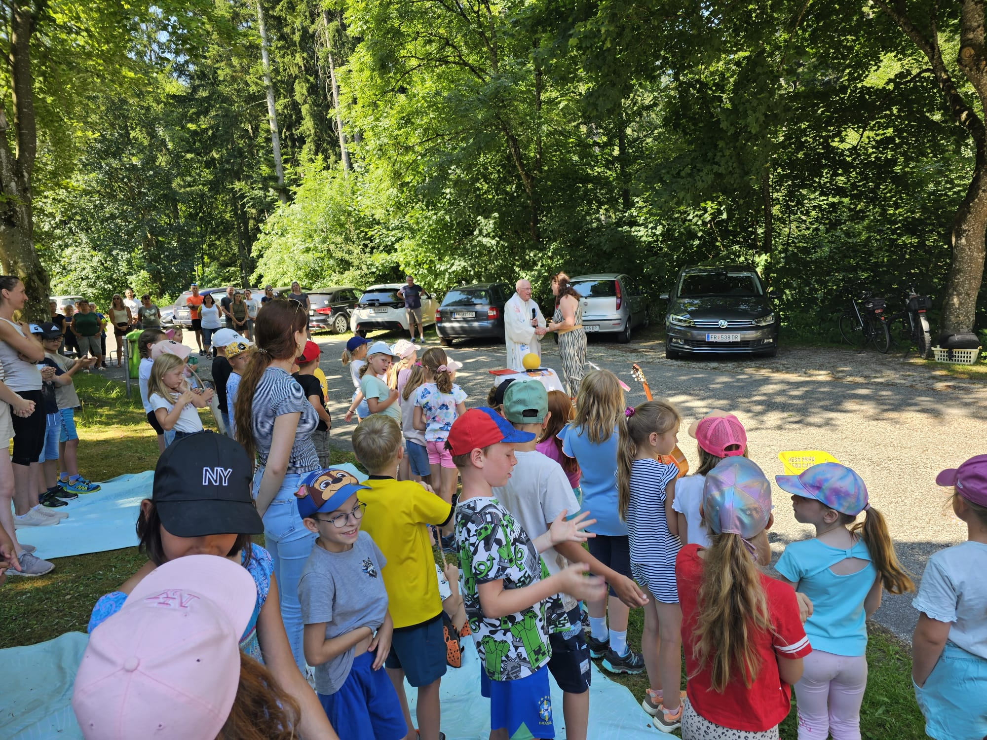 Am 3. Juli feierten alle Volksschulkinder, Eltern und Lehrer gemeinsam eine stimmungsvolle Feldmesse in Maria Bründl. Unsere Religionslehrerin Elisabeth Traxler gestaltete den Gottesdienst unter dem Thema „Auf den Weg machen“ und es wurde gesungen, gebetet und zurückgeblickt auf ein ereignisreiches Schuljahr.